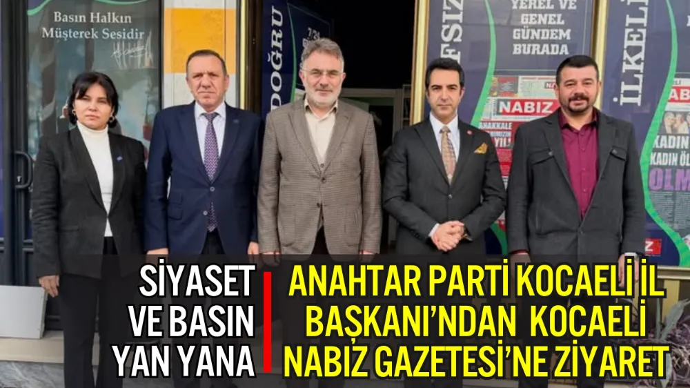 Anahtar Parti Darıca İlçe Başkanlığı, yerel basınla ilişkiler kapsamında Kocaeli Nabız Gazetesi’ni ziyaret etti. Anahtar Parti Kocaeli İl Başkanı Halil Keskinoğlu ve Darıca İlçe Başkanı Kınyas Bakar öncülüğünde gerçekleşen ziyarette; Anahtar Parti Kadın Kolları Başkanı Özden Yaman ile İlçe Yöneticisi Erol Tek de yer aldı.