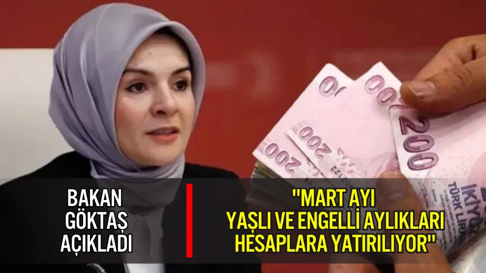 "Bu doğrultuda mart ayı için yaklaşık 4,74 milyar lira yaşlı aylığı ve yaklaşık 3,76 milyar lira engelli aylığı olmak üzere toplam 8,5 milyar lira tutarındaki yaşlı ve engelli aylıklarını hesaplara yatırmaya başladık. Ödemelerin tüm vatandaşlarımıza hayırlı olmasını diliyorum."