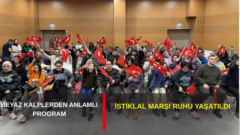 Kocaeli Büyükşehir Belediyesi bünyesinde hizmet veren İzmit Beyaz Kalpler Eğitim ve Gelişim Merkezi, İstiklal Marşı’nın yazarı Mehmet Akif Ersoy’u unutmadı. Bu kapsamda merkezde eğitim gören 20 öğrenci, Gonca Engelsiz Yaşam Merkezi’nde düzenlenen programda şair Atilla Çakıroğlu’nun “Marşımız” adlı şiirini okudu. Merkezden mezun olan öğrencilerden Zeynep Eznur ise “Bir Vatan Sevdası” adlı şiiri seslendirirken, öğrenciler ayrıca Arif Nihat Asya’nın “Bayrak” şiirini okuyarak programa anlam kattı. Bayrağın ve bağımsızlığın önemine vurgu yapılan programda duygu dolu anlar yaşandı.