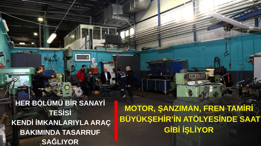 Sanayi tesisi gibi çalışan atölyede; motor toplama, şanzıman revizyonu, lastik işleri, fren ve diğer işlerin yapıldığını ifade eden Gürgen, “Dışarıda araç bakım onarım tamirleri hem çok uzun sürüyor hem de servis ücretleri çok pahalı. Kendi imkânlarımız ve kendi yedek parça stoğumuzla belediyemize büyük tasarruf sağlamış oluyoruz” diye konuştu.