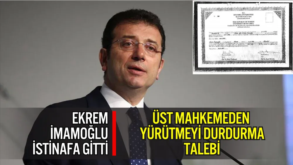 CHP’nin cumhurbaşkanı adayı ve İstanbul Büyükşehir Belediye Başkanı Ekrem İmamoğlu, iptal edilen üniversite diplomasına ilişkin davada yeni bir adım attı. İmamoğlu cephesi, davanın reddine karar veren İstanbul 5. İdare Mahkemesi kararını istinafa taşıyarak yürütmenin durdurulmasını ve kararın kaldırılmasını talep etti.