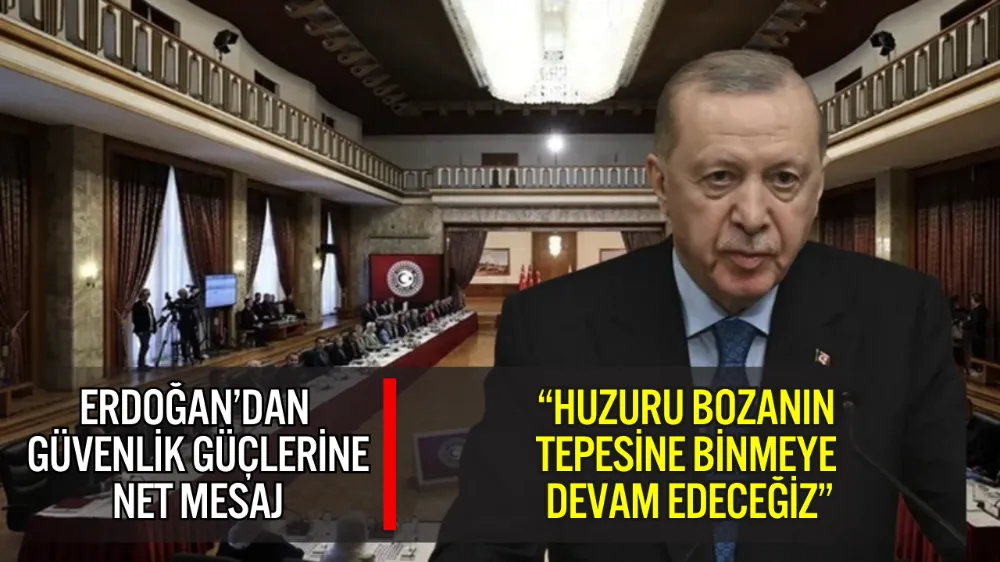 Güvenlik ve istikrar vurgusu yapan Erdoğan, “İnsanımızın huzurunu kim bozarsa, devletimizin güvenliğine kim el uzatırsa, özgürlüklerimize, demokrasimize kim saldırırsa tepelerine binmeye devam edeceğiz” dedi.