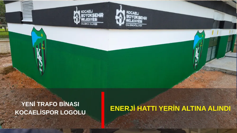 yeni inşa edilen trafo binası Kocaelispor logolu ve yeşil-siyahlı renklerle