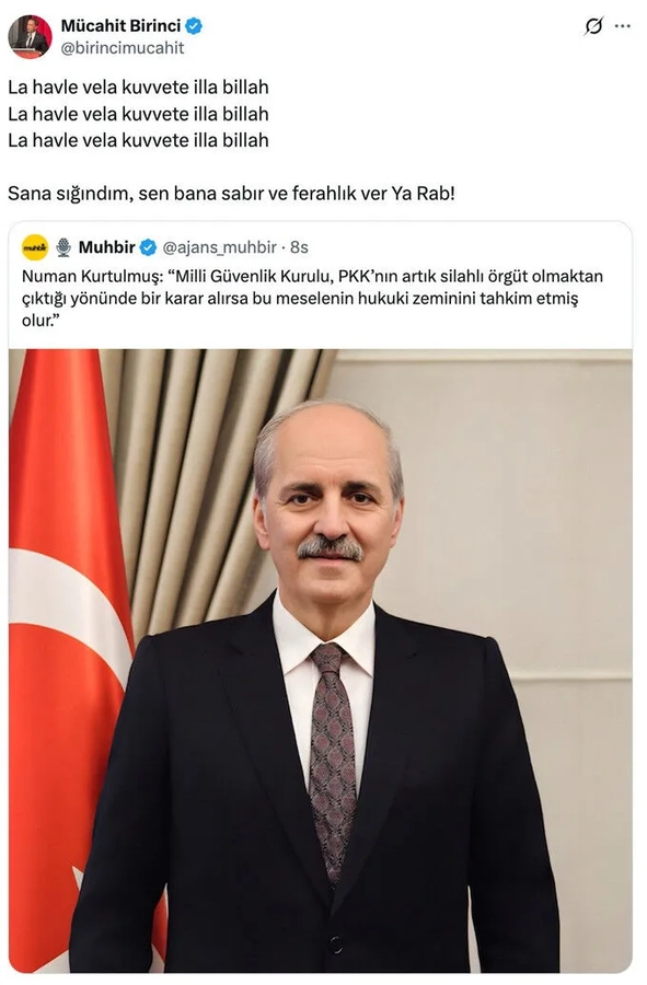 Eski AK Parti MKYK üyesi Mücahit Birinci, Numan Kurtulmuş’un sözlerine sosyal medya platformu X üzerinden sert tepki gösterdi. Birinci paylaşımında,