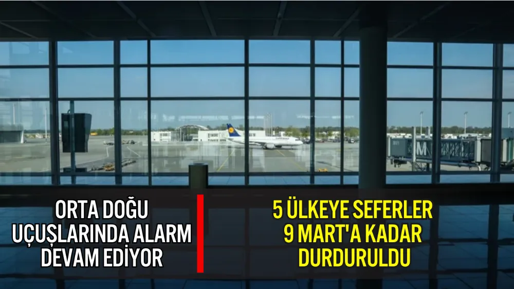 Havayolu taşıyıcılarımız İran, Irak, Suriye, Lübnan ve Ürdün seferlerini güvenlik riskleri nedeniyle 6 Mart 2026'ya kadar durdurmuştu. Bugün itibarıyla THY, AJet, Pegasus ve SunExpress tarafından bu ülkelere yönelik uçuşlar 9 Mart gün sonuna kadar durdurulmuştur.