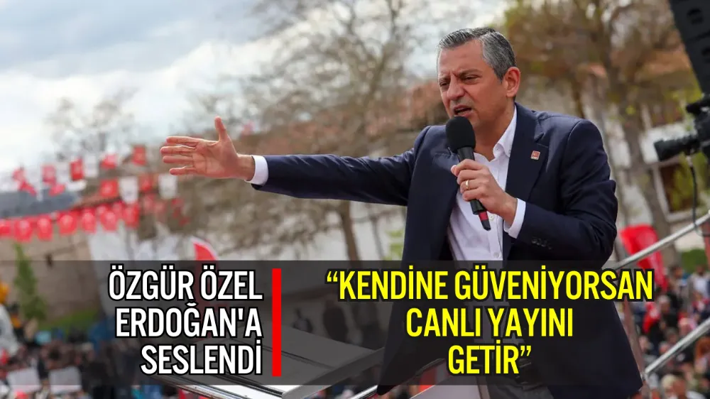 Konuşmasının sonunda Erdoğan’a doğrudan çağrı yapan Özel, İBB dosyasının canlı yayında tartışılmasını isteyerek, “Savcına, kendine güveniyorsan canlı yayını getir” sözleriyle polemiği büyüttü.