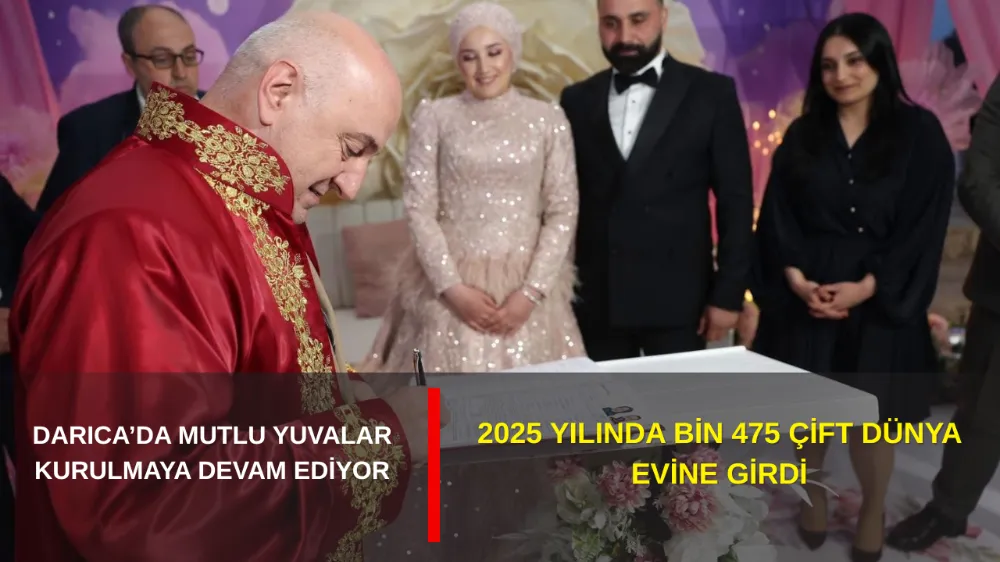 Darıca Belediyesi Evlendirme Memurluğu, 2025 yılında evlilik işlemleri için başvuran toplam 1.475 çiftin resmi nikahını kıydı.