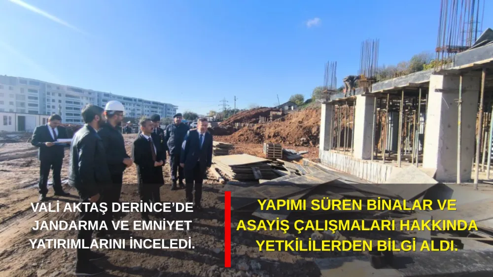 Derince İlçe J.K.V.J.Asb.Kd.Bçvş.Halis Açıkgöz rehberliğinde inşaat alanında incelemelerde bulunan Vali İlhami Aktaş, devam eden çalışmalar hakkında bilgiler aldı.