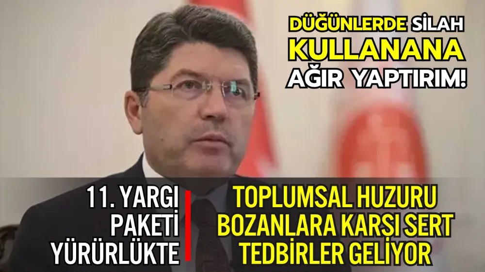 Adalet Bakanı Yılmaz Tunç, kamuoyunda merakla beklenen 11. Yargı Paketine ilişkin önemli açıklamalarda bulundu. Ceza adalet sisteminin etkinliğini artırmayı hedefleyen düzenlemelerin yürürlüğe girdiğini belirten Bakan Tunç, yeni paketle birlikte toplumsal huzur ve güvenliğin daha da güçleneceğini vurguladı. Tunç ayrıca, düğünlerde silah kullananlara 7,5 yıla kadar hapis cezası öngören düzenlemenin de pakette yer aldığını duyurdu.