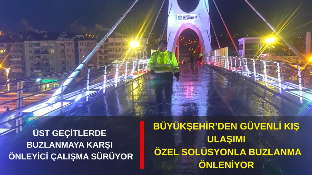 Kocaeli Büyükşehir Belediyesi, kış aylarında vatandaşların güvenli ulaşımını sağlamak amacıyla üst geçitlerde buzlanma ve donmaya karşı çalışmalarını aralıksız sürdürüyor. Kent genelindeki tüm üst geçitlerde özel solüsyonlar kullanılarak, buzlanmalarda olası kazaların önüne geçilmesi hedefleniyor.
