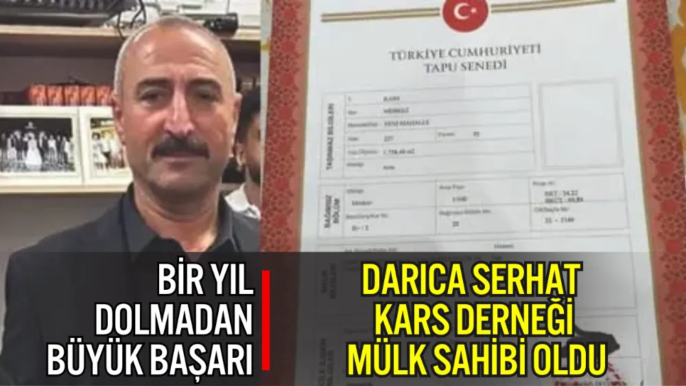 Darıca’da faaliyetlerini sürdüren Serhat Kars İli ve İlçeleri Kültür ve Yardımlaşma Derneği, kısa sürede gerçekleştirdiği çalışmalarla adından söz ettirmeye devam ediyor. Henüz kuruluşunun birinci yılı dolmadan önemli bir kazanım elde eden dernek, Kars’ta tapulu bir mülk satın alarak dernek adına ilk taşınmazını kazandı.