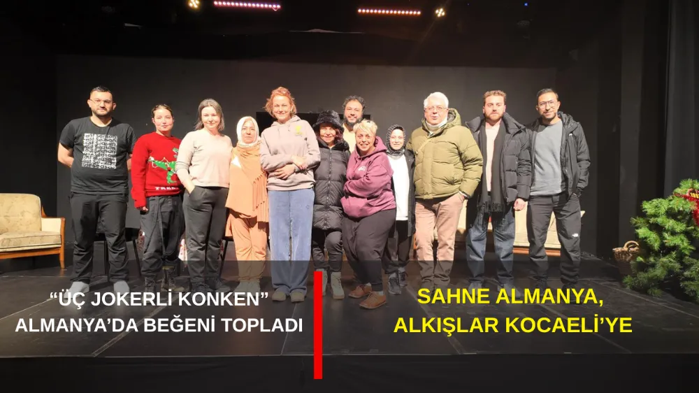 Kocaeli Şehir Tiyatroları, Almanya’da düzenlenen 10. Türk-Alman Tiyatro Festivali’ne bu yıl sevilen oyunu “Üç Jokerli Konken” ile damgasını vurdu. Tek perde olarak sahnelenen komedi oyunu festival programının öne çıkan yapımlarından biri olurken, seyirciler oyunu dakikalarca ayakta alkışladı. “ÜÇ JOKERLİ KON KEN” ALMANYA’DA SAHNE ALDI Kocaeli Büyükşehir Belediyesi’ne bağlı Şehir Tiyatroları, 10. Türk-Alman Tiyatro Festivali için gittiği Almanya’da büyük beğeni topladı. Şehir Tiyatroları’nın hem güldüren hem de düşündüren oyunu “Üç Jokerli Konken” bu kez yurtdışında izleyicisiyle buluştu. Festivalde salonu dolduran tiyatroseverler, oyunun hem güçlü oyunculuklarına hem de sahne üzerinde kurduğu samimi ve eğlenceli atmosfere adeta hayran kaldı. EVRENSEL DOSTLUK TEMASI DİKKAT ÇEKTİ Almanya’da büyük ilgiyle karşılanan “Üç Jokerli Konken” özellikle konusuyla dikkat çekti. Oyun, üç yakın arkadaşın yıllardır süren konken buluşmalarında beklenmedik sırlar, kırılmalar ve komik çatışmalarla dolu bir yüzleşmeye dönüşmesini konu alıyor. Bu üç arkadaşın evrensel dostlukları da bu yanıyla izleyiciyi hem güldürdü hem de duygu dolu anlar yaşattı. İZLEYİCİDEN ÖVGÜ DOLU YORUMLAR Oyun sonunda yapılan söyleşide seyirciler, özellikle karakterlerin içtenlikli performansları ile oyunun ritmi ve sahneleme dili hakkında övgü dolu yorumlarda bulundu. Festival yetkilileri, Kocaeli Şehir Tiyatroları’nı Türk tiyatrosunun Almanya’da güçlü bir temsilcisi olmayı sürdürmesinden dolayı tebrik etti. Kocaeli Şehir Tiyatroları, uluslararası festivallerde yer almaya devam ederek hem Türkiye’yi hem de kentin kültür sanat vizyonunu gururla temsil etmeyi sürdürüyor.