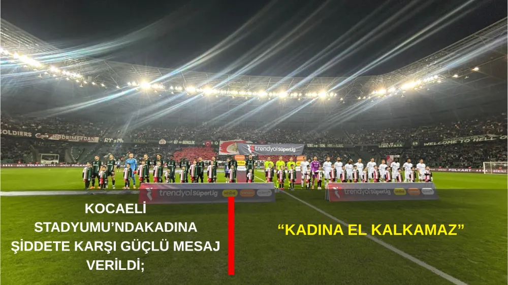 Karşılaşma öncesi seremoniye çıkan futbolcular, Kocaeli Büyükşehir Belediyesi tarafından hazırlanan “KADINA EL KAL-KA-MAZ, KADINA ŞİDDET İNSANLIK SUÇUDUR” ifadelerinin yer aldığı pankartlar taşıdı. Tribünleri dolduran binlerce futbolseverin tanıklık ettiği anla birlikte, kadına yönelik şiddete karşı net ve güçlü bir duruş sergilendi. Taraftarlar ise futbolculara alkışları ve ıslıklarıyla destek verdi.