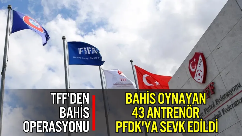 Türkiye Futbol Federasyonu (TFF), Türk futbolunda geniş yankı uyandıran bir karar aldı. TFF, son 5 yıl içerisinde Süper Lig’de görev yapmış 43 antrenörün, futbol müsabakalarına bahis oynadıkları gerekçesiyle tedbirli olarak Profesyonel Futbol Disiplin Kurulu’na (PFDK) sevk edildiğini duyurdu.